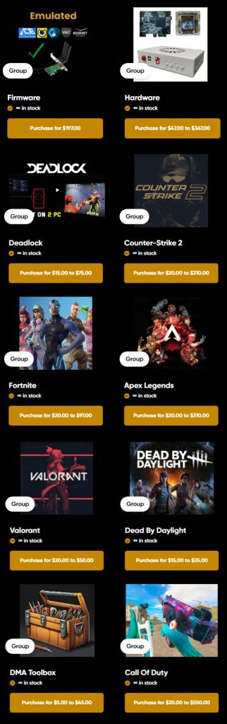 Explore our shop for competitively priced DMA hardware, including DMA cheats, DMA firmware, Makcu, Fuser, and 75T DMA cards. We offer fast shipping worldwide and reliable, fast support to keep your setup running smoothly. Enjoy secure and convenient payment options with all major Stripe methods based on your country, plus cryptocurrency payments for added flexibility. Get high-quality DMA products designed for serious gamers at great value.